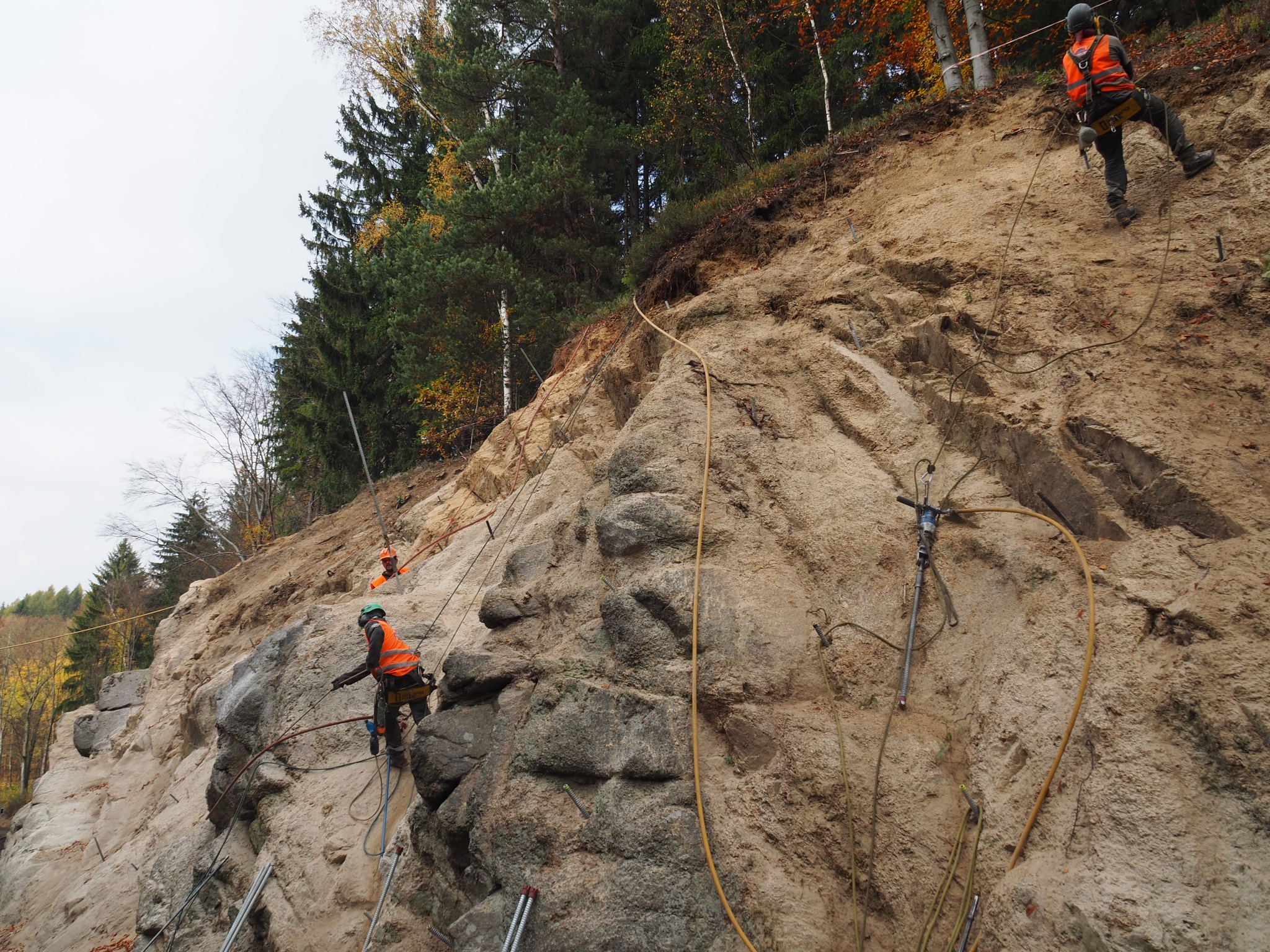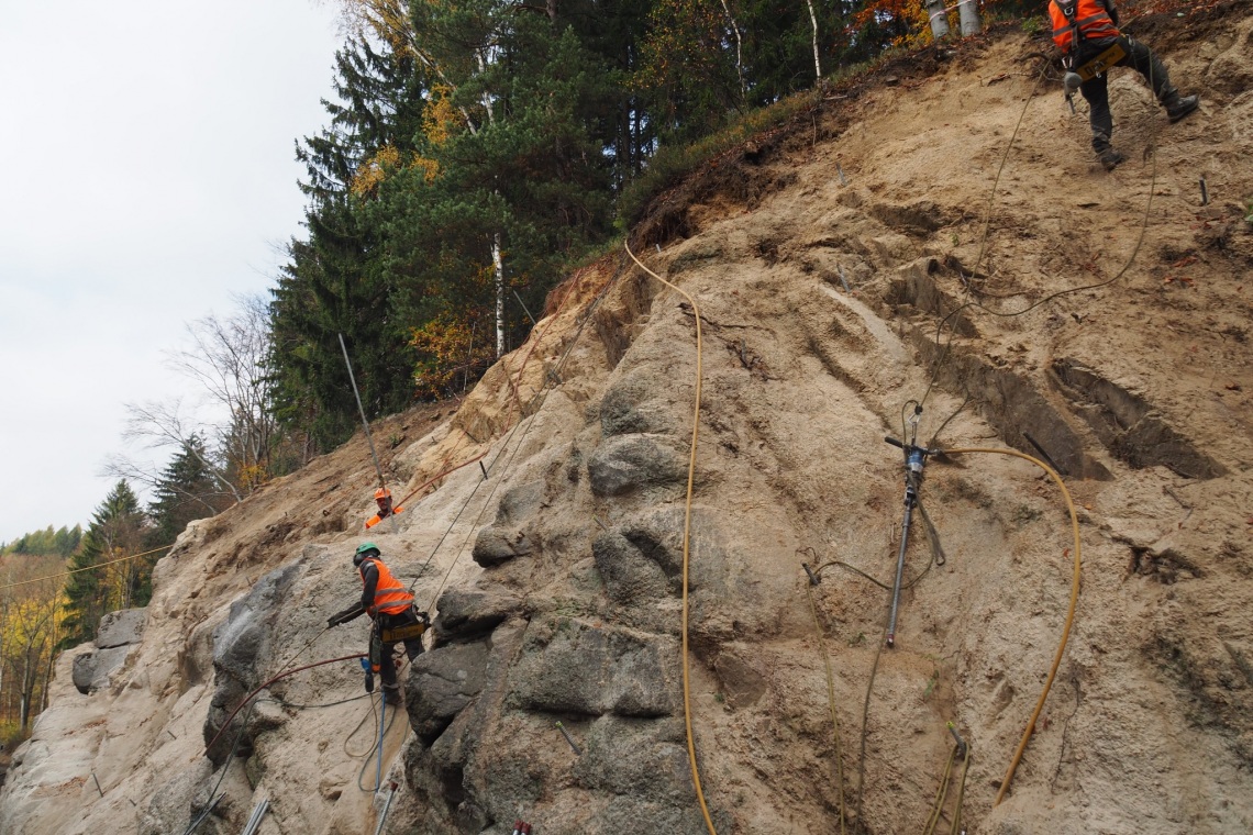 Zajištění skalního masivu bezpečnostními sítěmi Maccaferri